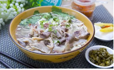 插花牛肉汤起源于清朝道光年间,发展至今已有近200年的历史。其原汤采用牛骨、上乘牛肉等原料添加众多调料,用文火熬制而成,口味纯正,回味悠长。