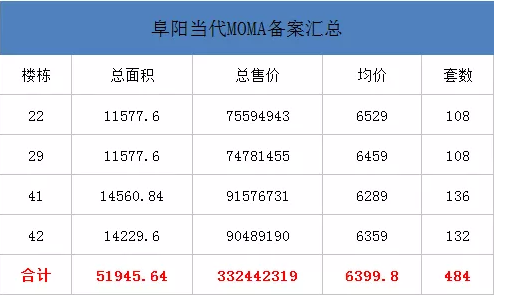 阜阳市发改委网站(市物价局)发布当代城22#、29#、41#、42#商品房销售明码标价及相关信息公示,当代城22#、29#、41#、42#共备案484套住宅,备案均价6399.81元/㎡,总备案建筑面积51945.64平米;商业备案3套,备案均价32297.59元/㎡,总备案建筑面积417.61平米。详情如下: